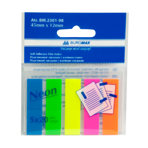 Закладки пластикові NEON, з клейким шаром, 45x12 мм, 5 кол.по 20 арк. BM.2301-98