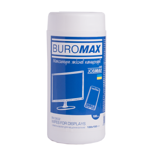 Серветки для чищення екранів, моніторів та оптики, JOBMAX, вологі, 100 шт. в пласт.тубі BM.0802